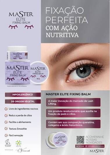 O Fixing Balm Master é um fixador em creme sem cola, desenvolvido especificamente para lifting de cílios. Possui uma fixação perfeita com ação nutritiva, graças à sua composição que contém queratina, colágeno e ácido hialurônico. Além de ser hipoalergênico e de origem vegetal, reduz a perda de cílios e facilita o alinhamento dos fios.